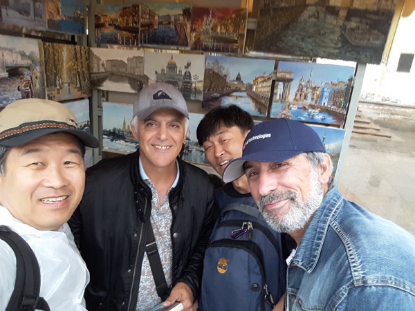 황제의 마을 투어는 기대 이상의 모습과 기대 이하의 일정이 공존하였다. 아침 일찍부터 서둘러 호텔 조식도 먹지 못하고 약속장소로 나가, 기차를 타고 이동 후 도착한 궁전은 참으로 멋지고 화려하였으며, 그림 작업을 하는 우리에겐 영혼의 색채를 얻은 듯하여 매우 감동적이었다. 파블롭스크 예카테리나 궁전과 푸시킨 초원을 보며 마음은 미래에 살고 현재는 늘 슬픈 것, 모든 것은 순간에 지나가고 지나간 것은 다시 그리워지니를 가슴에 새겼다. 푸른초원은 나를 붙잡았다. 평소 작업하여 오던 내 일상의 그림배경과 너무 나도 흡사하였던 것이다. 발이 떨어지질 않았다. 패키지투어가 아닌 에어텔 임에도 모자란 시간, 아쉬운 시간 --- 아 ~