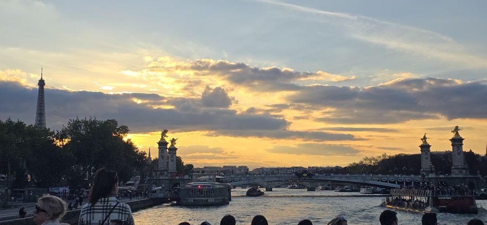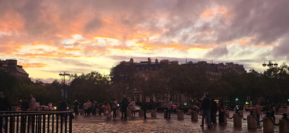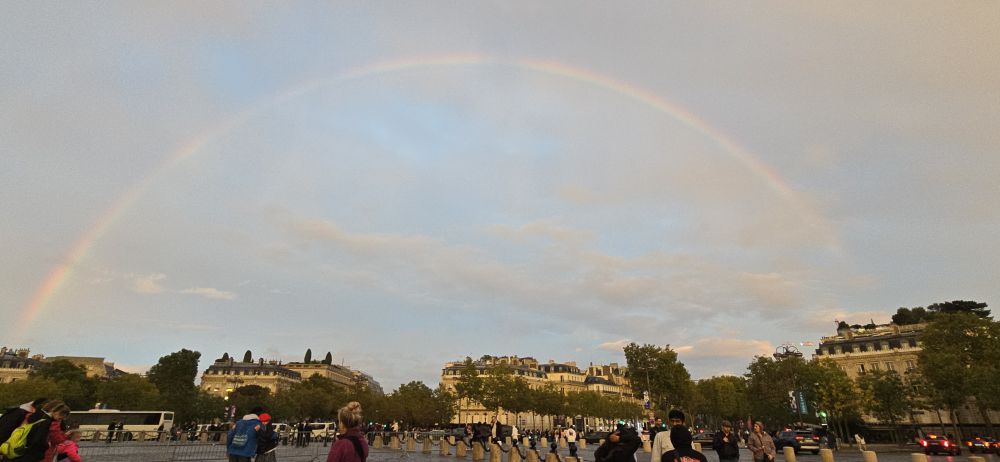 센강에 내려앉은 붉은 노을과  비 개인 샹젤리제의 무지개!!!