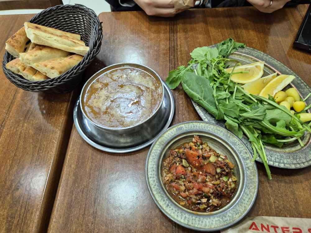 이스탄불 음식들도 먹어봤어요 사진에 있는 건 베이란(우리나라 육개장이랑 맛 비슷합니다 이것도 맛있었어요), 메제(튀르키예 식당에서 나오는 반찬? 같은건데 식당마다 다 다른 메제가 있어요) 퀴네페(이건 그래도 시럽을 뿌려먹을 수 있어서 다 먹을 수 있었습니다 구워진 카다이프 사이에 치즈가 들어있어요) 이구요.