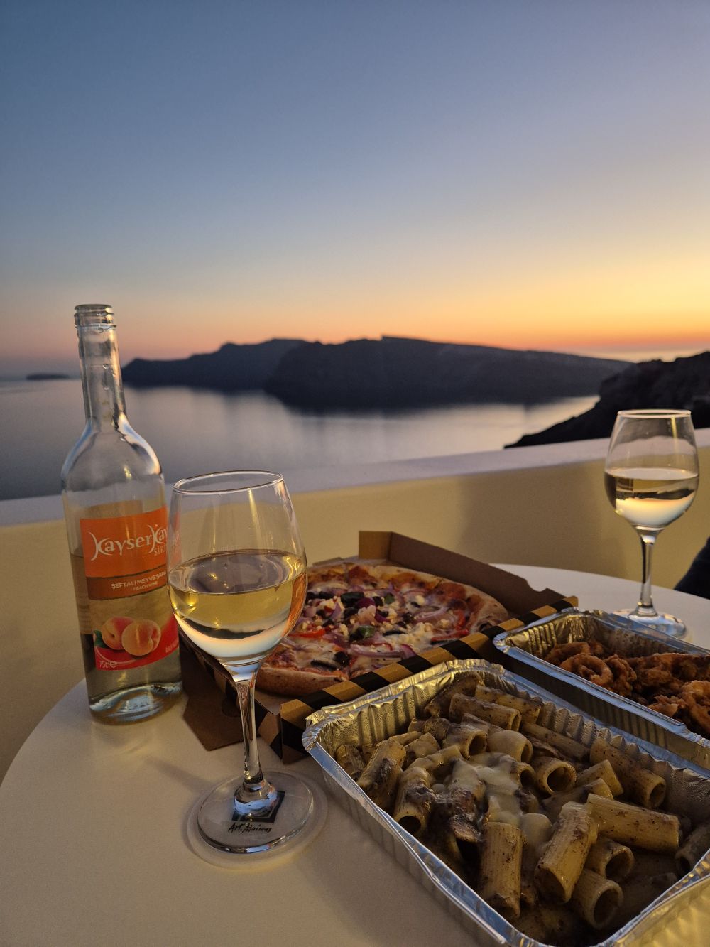 쉬린제에서 산 와인 마시면서 이아마을 선셋을 보고 있으니까 그동안 마음 고생하던게 싹 사라지더라구요.(이야마을에 선셋 뷰포인트도 있는데 저희 부부는 숙소에서 보기로 했어요) 자연재해라 어쩔 수 없는거 알지만.... 그래도 신혼여행인데... 언제 또 산토리니 가볼 수 있을지 기약도 없고....  그런데 산토리니 들어와서 선셋을 보고 있다니!!! 사실 행복하고 황홀하고 그동안 마음 고생하던 것도 생각나서 눈물이 살짝 났는데 남편이 '행복한데 왜 울어~' 하더라구요. 사실 틀린말은 아니지만 행복함과 안도감의 섞여서 그랬다는 건 나중에 말해주었답니다 ㅋㅋㅋㅋ 사진에 이아마을 선셋의 황홀함이 다 담기지 않아서 그게 아쉬워요.