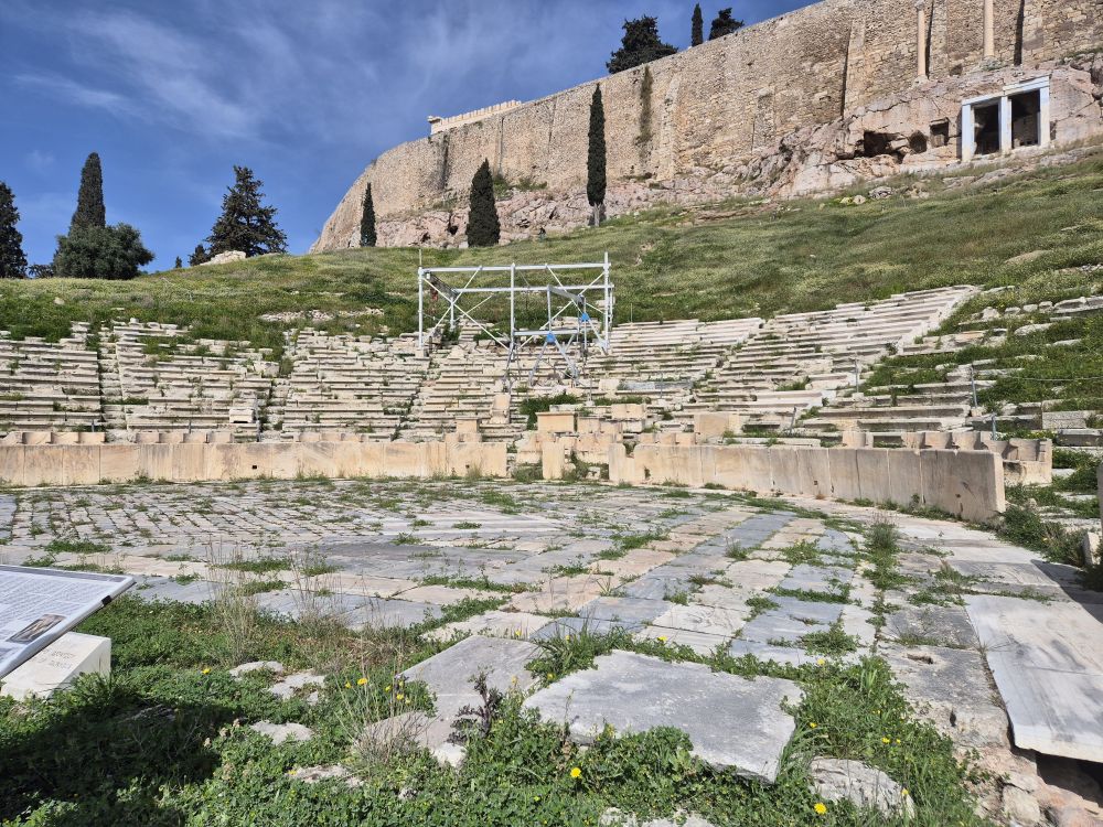 디오니소스 극장이에요. 등받이가 있는 곳이 vip석이라고 해요.