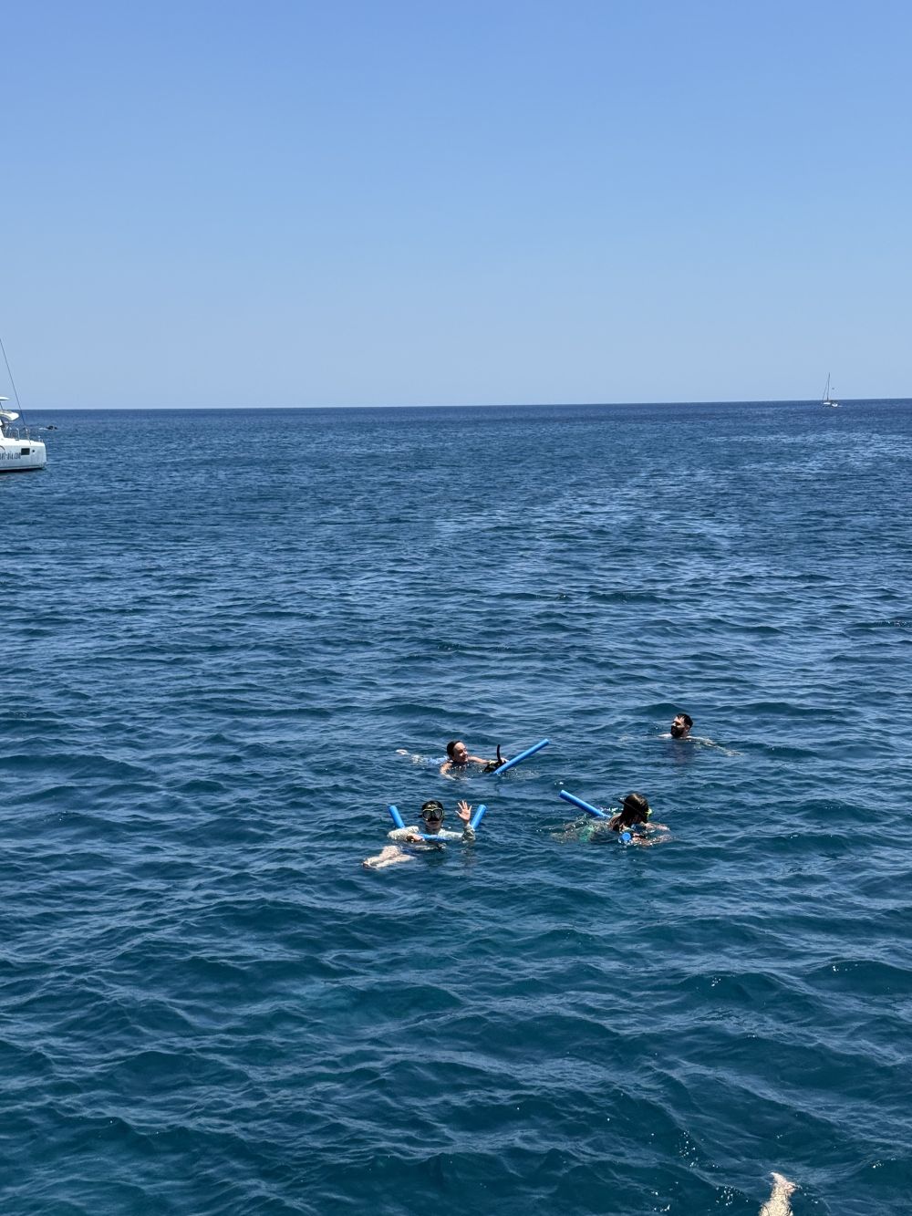 바다에서 보는 산토리는 또다른 매력이 있었습니다. 레드비치, 화이트비치를 들리며 그 곳에서 수영도 할 수 있게 스노쿨링 장비도 다 빌려주며 바다수영을 자유롭게 했구요. 수영한 후엔 낮잠시간도 있고, 바베큐파티 & 그릭샐러드 & 그리스 요리들을 제공하며 와인과 맥주 무제한 제공으로 배부른 점심을 먹을 수 있었어요. 멀미가 날 줄 알고 걱정했는데 배가 그렇게 많이 흔들리진 않았던 것 같습니다!